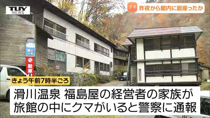 11月7日の午前7時半ごろ、経営者の家族が旅館の中にクマがいると警察に通報しました。