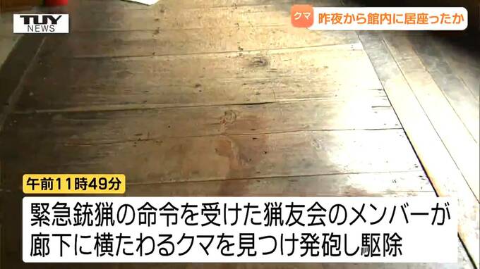 そして7日午前11時49分。緊急銃猟の命令をうけた猟友会のメンバーが建物に入り防火扉を開けたところ、廊下に横たわっていたクマを見つけ、発砲し駆除。