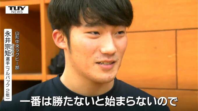 山形中央ラグビー部 永井宗矩 選手(フルバック 2年)「一番は勝たないと始まらないので。自分たちが得意とするスピードラグビー(足が速い人たちも沢山いるので)その足の速さを活かしてたくさんトライができたらなと思う」