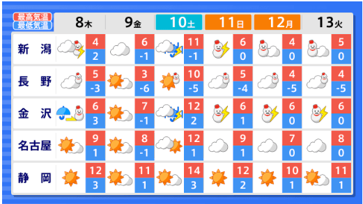 【早期天候情報】東日本の日本海側で大雪か...「この時期としては10年に1度程度級」の可能性 東北日本海側、北陸、長野県、群馬県、岐阜県 気象庁発表 全国の天気を地方ごとに 2026年1月6日(火) 15:00 国内 ■全国の天気を地方ごとに(画像) 画像はTBS NEWS DIG Powered by JNNより 画像ありの記事を最初から https://newsdig.tbs.co.jp/articles/-/2384334?display=1