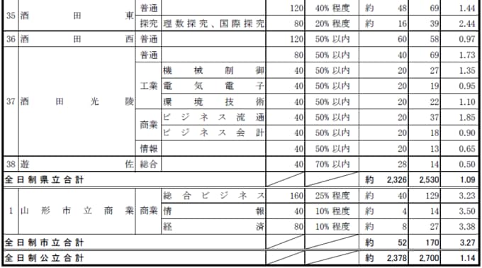 酒田東の探究も2.44倍。山形商業の情報が3.50倍。