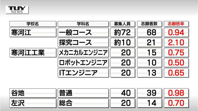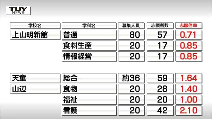 【動画】2026年度入学 山形県公立高校入試前期試験(特色選抜) 志願倍率発表 全体の志願倍率は1.12倍 公立高等学校全校掲載