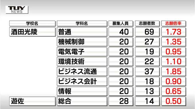 【動画】2026年度入学 山形県公立高校入試前期試験(特色選抜) 志願倍率発表 全体の志願倍率は1.12倍 公立高等学校全校掲載