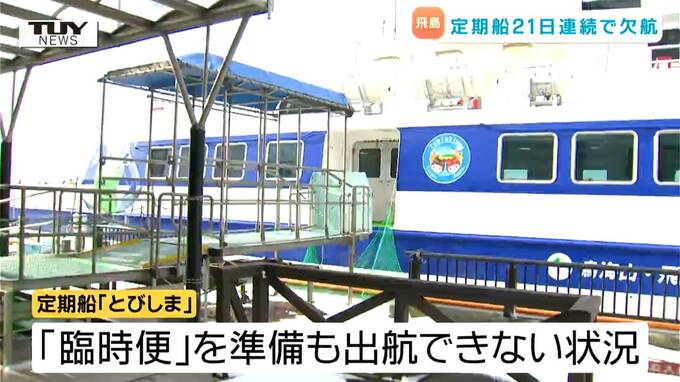 定期船「とびしま」は、年末から続く荒れた天気の影響で欠航が過去最長を更新し続けていて、きょうで21日連続となっています。