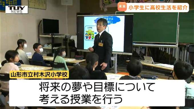 将来の夢や目標について考えるために、小学生が高校生活について学ぶ講座がきょう、山形市内の小学校で開かれました。