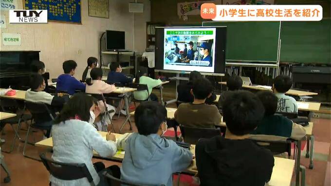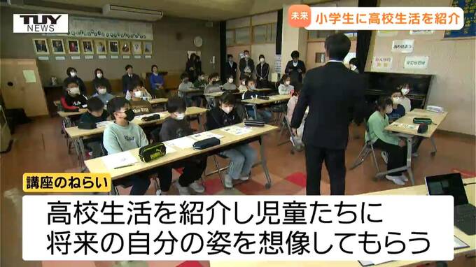 この小学校では普段から将来の夢や目標について考える授業を行っていて、きょう開かれた高校生活を紹介する講座は児童たちに将来の自分の姿を想像してもらう狙いで、今回、初めて小学生を対象に行われました。