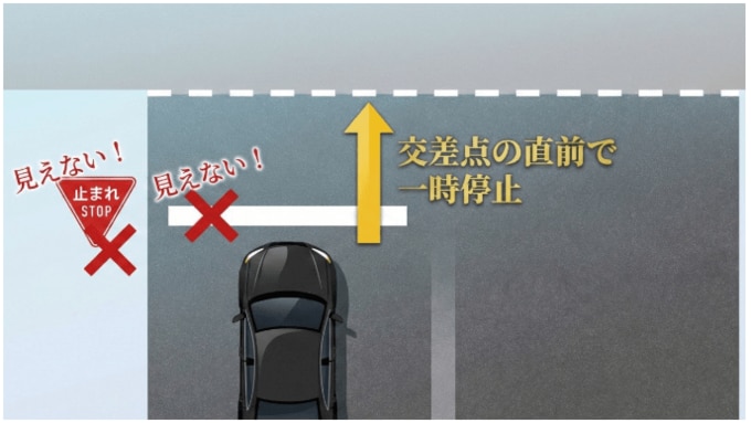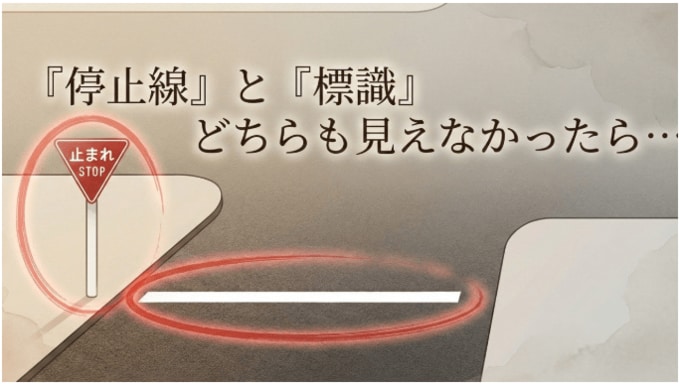 「停止線」に加え「標識」も見えなかったら…?違反になる?停止しなきゃいけないとしたら、停止位置はどこになるのでしょうか??