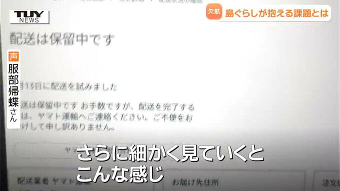 酒田市飛島地域おこし協力隊 服部帰蝶さん「これはAmazonの注文状況の(画面)なんですが、注文日が1月1日で、いま『配送は保留中です』と表示されています。さらに細かく見ていくと、こんな感じですね」