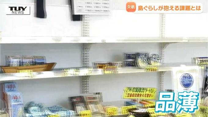 こちらは、きのう撮影された食料や日用品などを売る島で唯一の売店。カップ麺や冷凍食品を含め、かなり品薄でした。