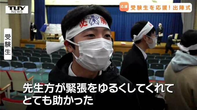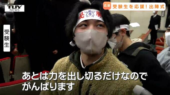 受験は団体戦。生徒たちが互いに鼓舞する場面も。