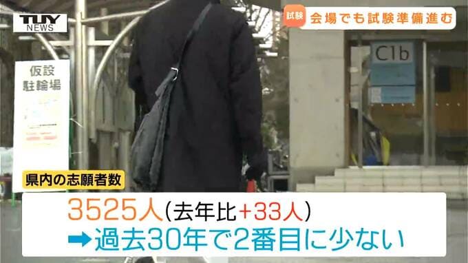 大学入学共通テストは、県内6つの会場で実施されます。県内の志願者数は3525人で去年より33人増えましたが、過去30年では2番目に少なくなっています。