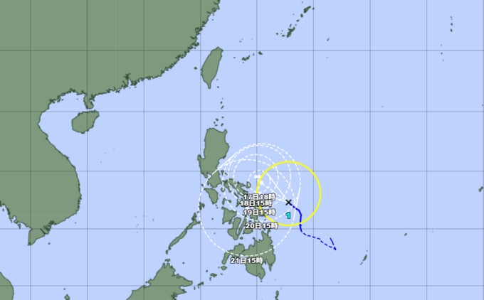 予報円の中心 北緯14度05分 (14.1度)