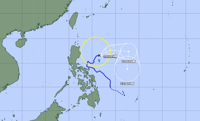 進行方向、速さ 東北東 10 km/h (6 kt)