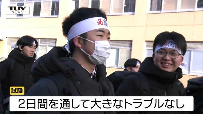 各会場によりますと、2日間を通して不正行為などの大きなトラブルはなかったということですが、山形大学が管理する会場で英語のリスニング試験で使用する小型機器の不具合で一部を聞き取れず、試験終了後に中断した箇所からやり直す「再開テスト」が行われたということです。