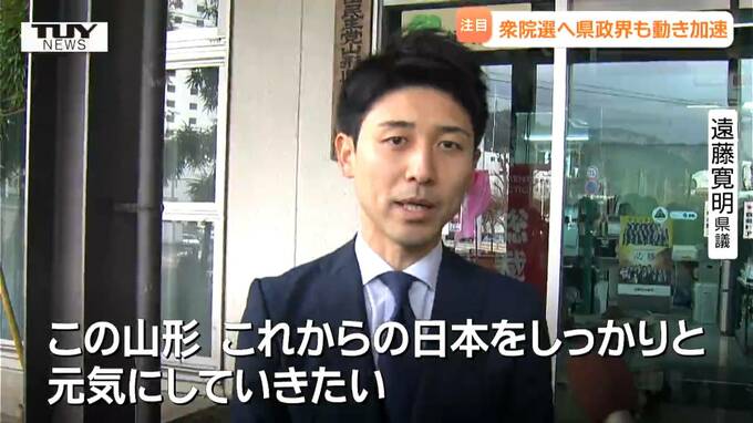 遠藤寛明 県議「この度の衆議院議員選挙で出馬する決断をした中であります。この山形、これからの日本をしっかりと元気にしていきたい。若い力でこれからの日本を変えていきたいと、そんな思いで決断した」