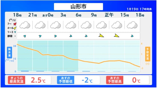 【山形天気】庄内では雪を伴った西よりの強い風が吹きしける予報 20日は風雪や高波に注意・警戒 全国の天気を画像で 気象庁 2026年1月19日(月) 19:57 国内 ■山形・全国の天気(画像) 画像はTBS NEWS DIG Powered by JNNより 画像ありの記事を最初から https://newsdig.tbs.co.jp/articles/-/2410626?display=1