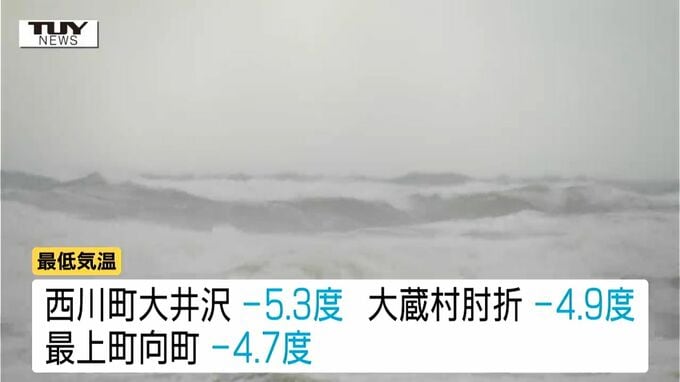 また、きょうは各地で冷え込み、最低気温は西川町大井沢で-5.3度、大蔵村肘折で-4.9度、最上町向町で-4.7度となりました。