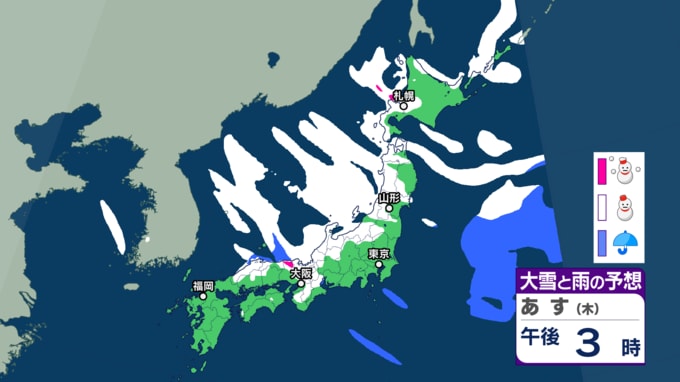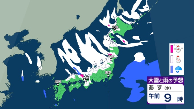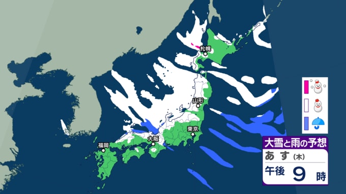 大雪情報 いつ・どこで雪降る?【21日~25日の降雪シミュレーション】寒波襲来...北日本から西日本では25日頃にかけて平地でも大雪に 24時間予想降雪量は? 東北の天気はどうなる? 2026年1月21日(水) 12:55 国内 22日の雪と雨の予報