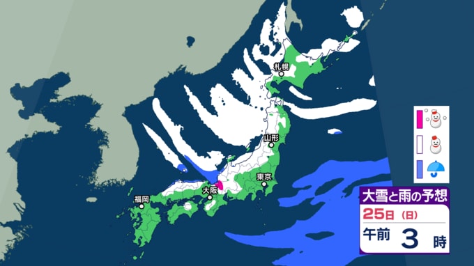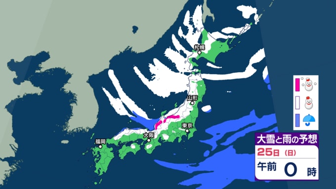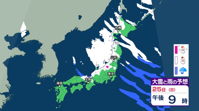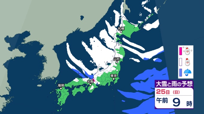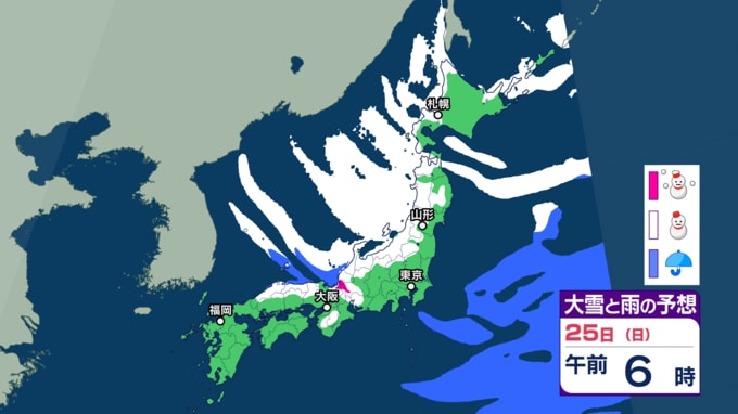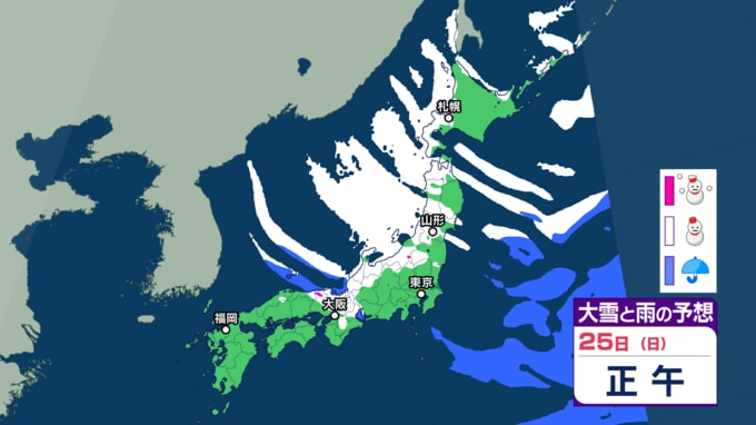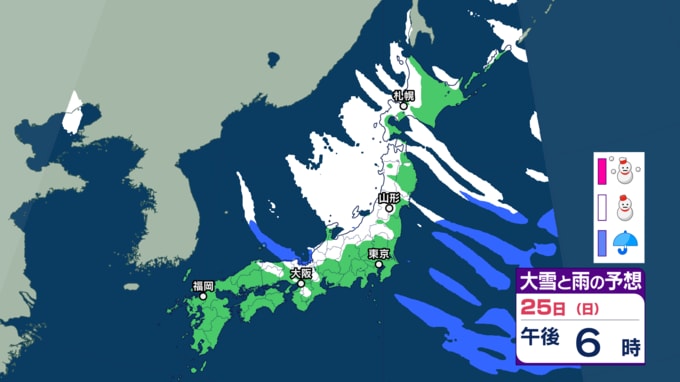 大雪情報 いつ・どこで雪降る?【21日~25日の降雪シミュレーション】寒波襲来...北日本から西日本では25日頃にかけて平地でも大雪に 24時間予想降雪量は? 東北の天気はどうなる? 2026年1月21日(水) 12:55 国内 25日の雪と雨の予報 画像ありの記事を最初から https://newsdig.tbs.co.jp/articles/-/2414203?display=1