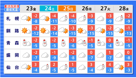 【東北天気】東北日本海側を中心に25日頃にかけて大雪となる所も 交通障害、屋根からの落雪などに注意・警戒 24時間降雪量は? 東北・全国の天気を画像で 気象庁 2026年1月21日(水) 11:36 国内 ■東北・全国の天気を画像で 画像はTBS NEWS DIG Powered by JNNより 画像ありの記事を最初から https://newsdig.tbs.co.jp/articles/-/2414294?display=1