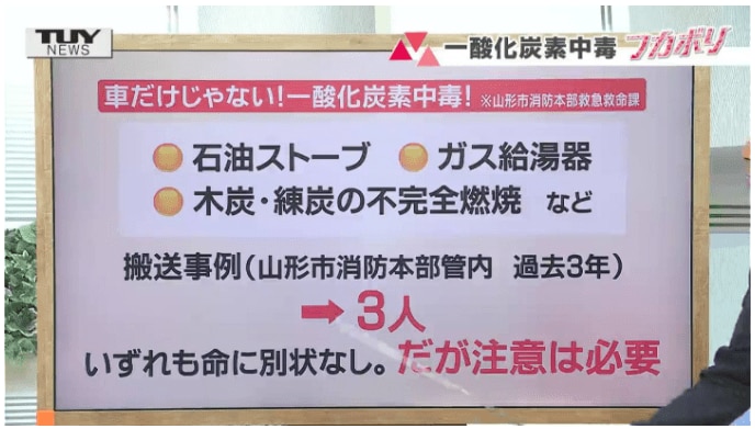 山形市消防本部の担当者によると、建物内での一酸化炭素中毒の発生、救急搬送事例は実際にあるそうです。
