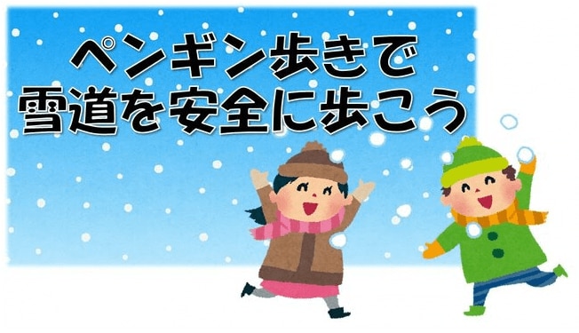 ペンギン歩きで、雪道を慎重に安全に歩きましょう!