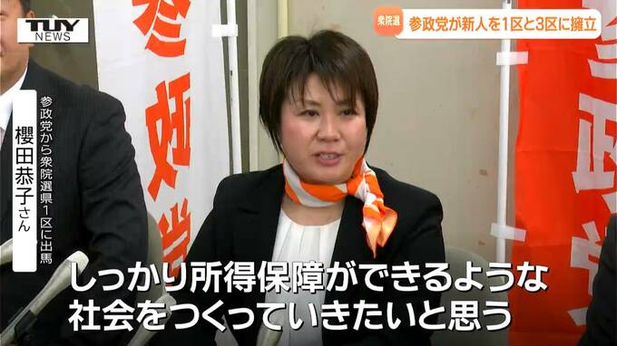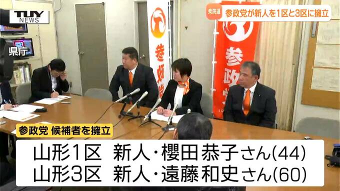 きょう、参政党は山形市で記者会見を開き、衆院選山形1区に新人の櫻田恭子さん、3区に同じく新人の遠藤和史さんを擁立すると発表しました。