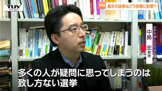 山形大学人文社会科学部 中島宏 教授「雪が多そうなので有権者の皆さんも雪が降れば投票所に行くのが大変になるのでやや投票率が落ちるのではないかと心配している」