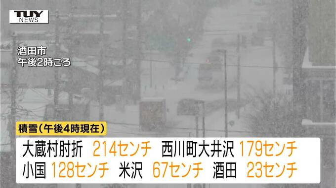 山形県内 25日昼前にかけ大雪に注意・警戒 2026年1月24日(土) 19:00 国内 強い冬型の気圧配置の影響で、県内はあす昼前にかけて大雪となるところがある見込みで、交通障害や落雪、建物被害などに注意・警戒してください。県内の午後4時現在の積雪は大蔵村肘折214センチ、西川町大井沢179…