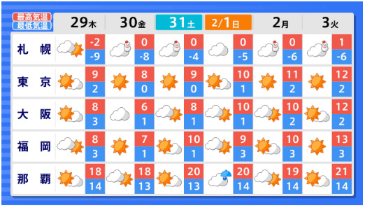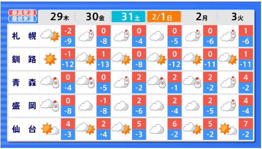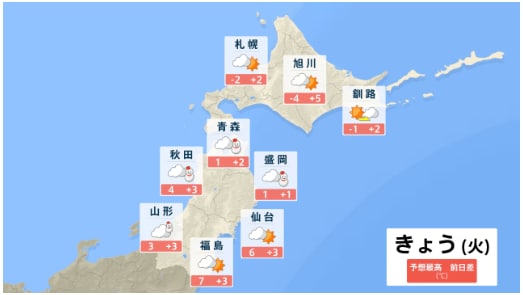 東北地方の向こう3か月(2月~4月)の天候の見通しは 平均気温・降水量は? 月別では? 今後の東北・全国の天気を画像で 気象庁 2026年1月27日(火) 12:00 国内 ■東北・全国の今後の天気(画像) 画像はTBS NEWS DIG Powered by JNNより 画像ありの記事を最初から https://newsdig.tbs.co.jp/articles/-/2426394?display=1