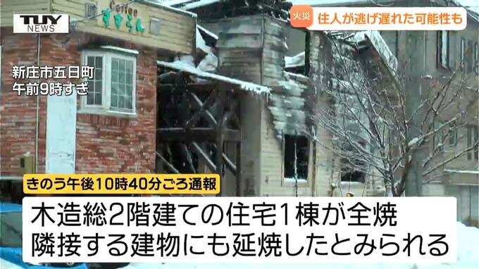 この火災は、きのう午後10時40分ごろ新庄市五日町で起きたもので、木造2階建ての住宅1棟が全焼し、隣接する建物にも延焼したとみられています。