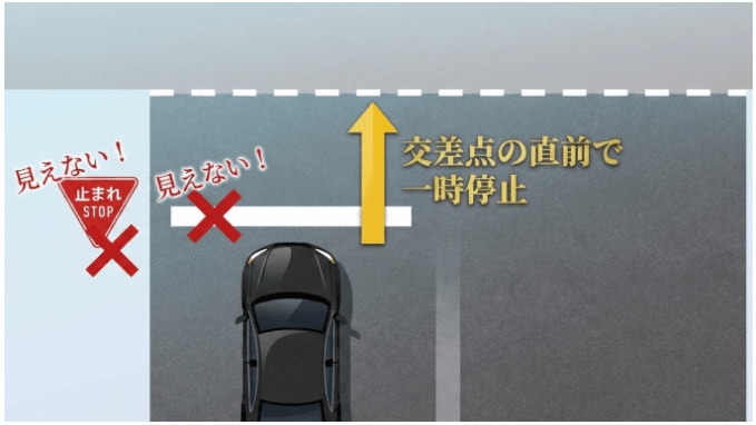 この「停止線」と「標識」の2つが見えないことはままあるのです。