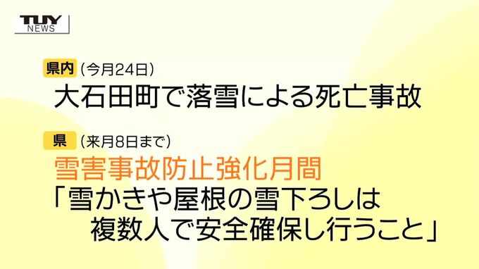 県内では、今月24日に大石田町で落雪による死亡事故が発生するなど、雪害事故が相次いでいます。