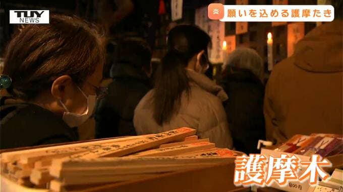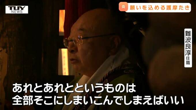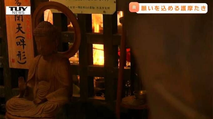 堂内には地元の住民など多くの人が集まり、読経が響く中、参拝者が願いを描いた護摩木が炎にくべられ、厳かでありながらも新年らしい空気に包まれました。