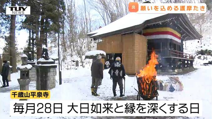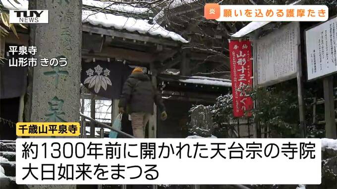 山形市の平泉寺では無病息災や家内安全を願って護摩をたく「大護摩供(おおごまく)」が行われました。
