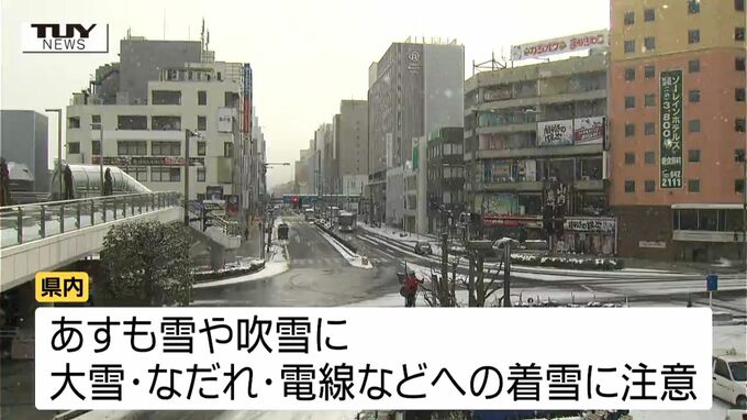 気象台によると、警報級の大雪になる可能性は低いということですが、あすも雪や吹雪となるところが多くなる見込みで、引き続き大雪やなだれ、電線などへの着雪に注意するよう呼びかけています。