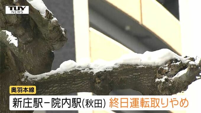 鉄道にも影響が出ています。JR東日本によりますと、奥羽本線は新庄駅と秋田県の院内駅の間で終日運転を取りやめるほか、陸羽西線も新庄駅と余目駅の間で終日運転取りやめ、米坂線は米沢駅と今泉駅の間でけさ運行予定だった3便の運転を取りやめました。
