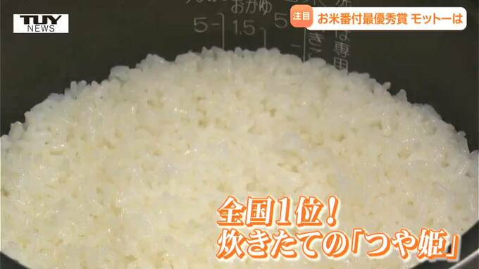 こちらが全国1位に輝いた炊きたての「つや姫」!湯気からも「甘い香り」が伝わり食欲をそそられます。