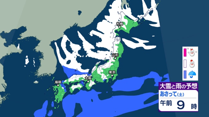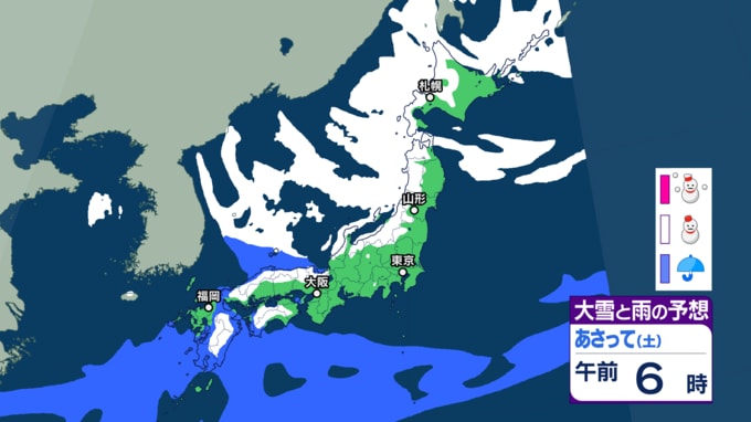 【雪情報】寒波襲来 週末は関東も平地でも雪か 東京都心でも...衆議院選挙の投開票日は日本海側の広範囲で大雪の恐れ 【6日~8日の降雪シミュレーション】気象庁 2026年2月5日(木) 17:10 国内 ■雪と雨のシミュレーション(7日)