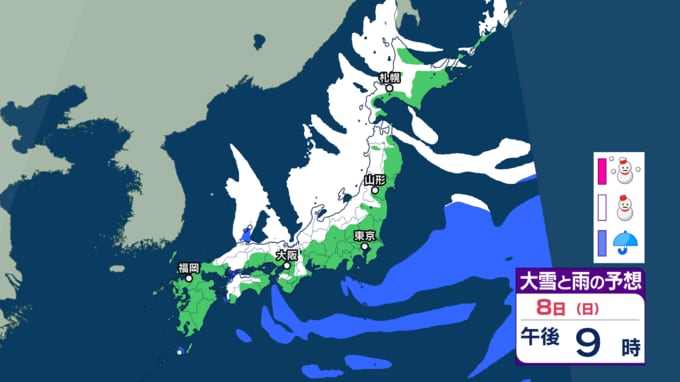 【雪情報】寒波襲来 週末は関東も平地でも雪か 東京都心でも...衆議院選挙の投開票日は日本海側の広範囲で大雪の恐れ 【6日~8日の降雪シミュレーション】気象庁 2026年2月5日(木) 17:10 国内 ■雪と雨のシミュレーション(8日) 画像ありの記事を最初から https://newsdig.tbs.co.jp/articles/-/2449280?display=1
