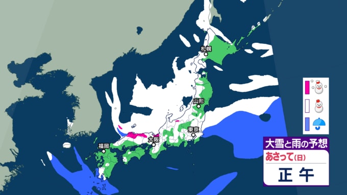 「雪と雨のシミュレーション」「地方ごとの週間天気」を画像で掲載しています。