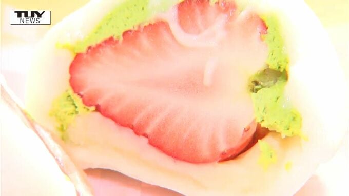 佐藤友美アナウンサー「ふわっふわですね。いちごのほのかな酸味が抹茶と練乳の甘さとあっておいしいです」
