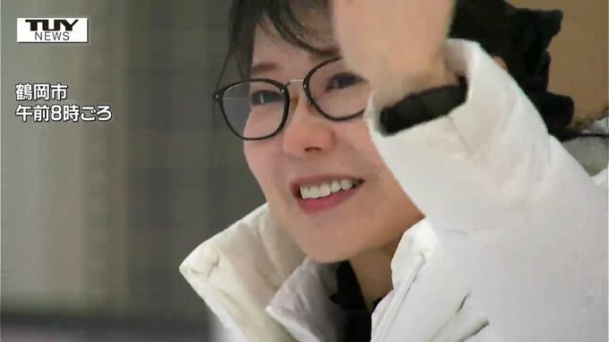 一夜明け、加藤さんは鶴岡市の事務所前に立って感謝の気持ちを伝えました。