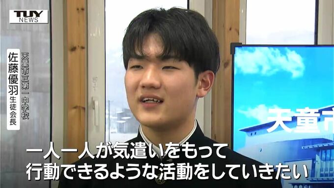 天童市立第一中学校 佐藤優羽 生徒会長「大人と子どもが色々な視点で話し合えるという場でとても貴重な体験だったなと思いました。(今後)一人一人が自分の行動を見直して一人一人が気遣いをもって行動できるような活動をしていきたいと思います」