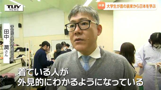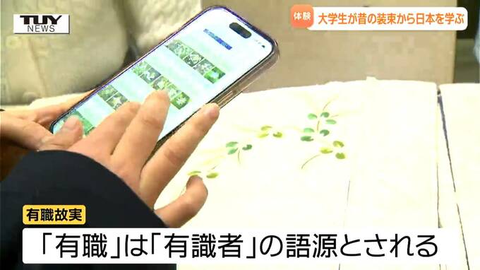 きょうは学習院大学から講師を招き、実際に伝統的な装束を着ました。