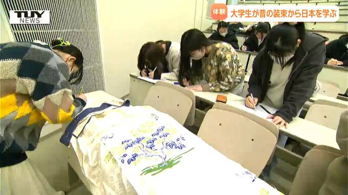 県立米沢女子短期大学で、きょう伝統的な装束を着て学びを深める名物授業が開かれました。