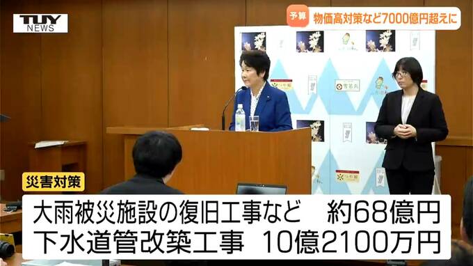 災害対策として、おととし(2024年)7月の大雨で被災した公共土木施設の復旧工事などで68億円ほどが計上されたほか、埼玉での道路陥没事故を教訓に下水道管の改築工事に10億2100万円が充てられています。