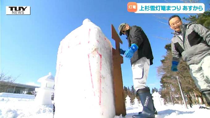 上杉雪灯篭まつりはあすから2日間、上杉神社を中心に一帯で行われ、午後5時半から点灯が始まります。