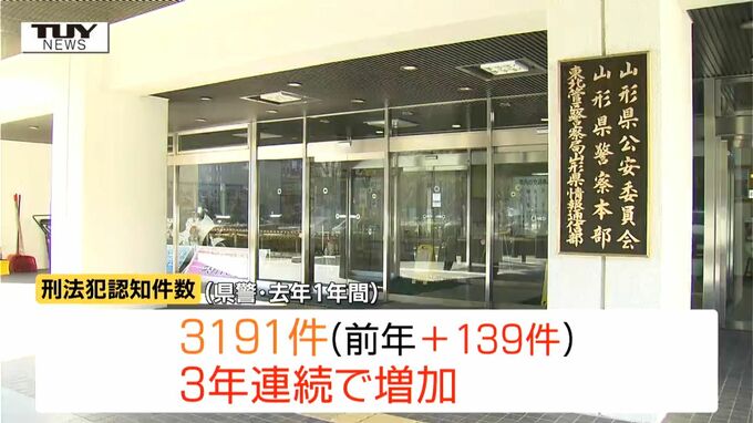 県警によりますと県警が去年1年間に認知した刑法犯の件数は3191件で、前の年より139件多く3年連続で増加しました。