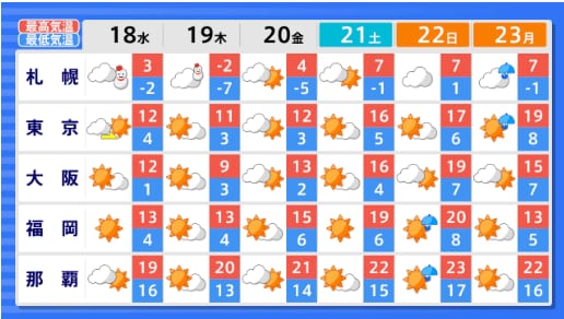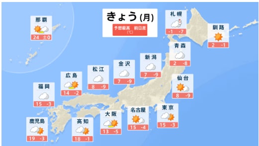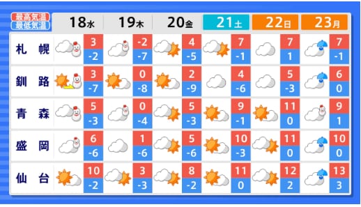 気温は高く降雪量は少ないか...東北地方の向こう1か月(2/14~3/13)の天候の見通しは? 平均気温・降水量・日照時間・降雪量は? 気象庁 2026年2月16日(月) 12:38 国内 ■全国の天気を地方ごとに(画像) 画像はTBS NEWS DIG Powered by JNNより 画像は気象庁より https://newsdig.tbs.co.jp/articles/-/2469985?display=1